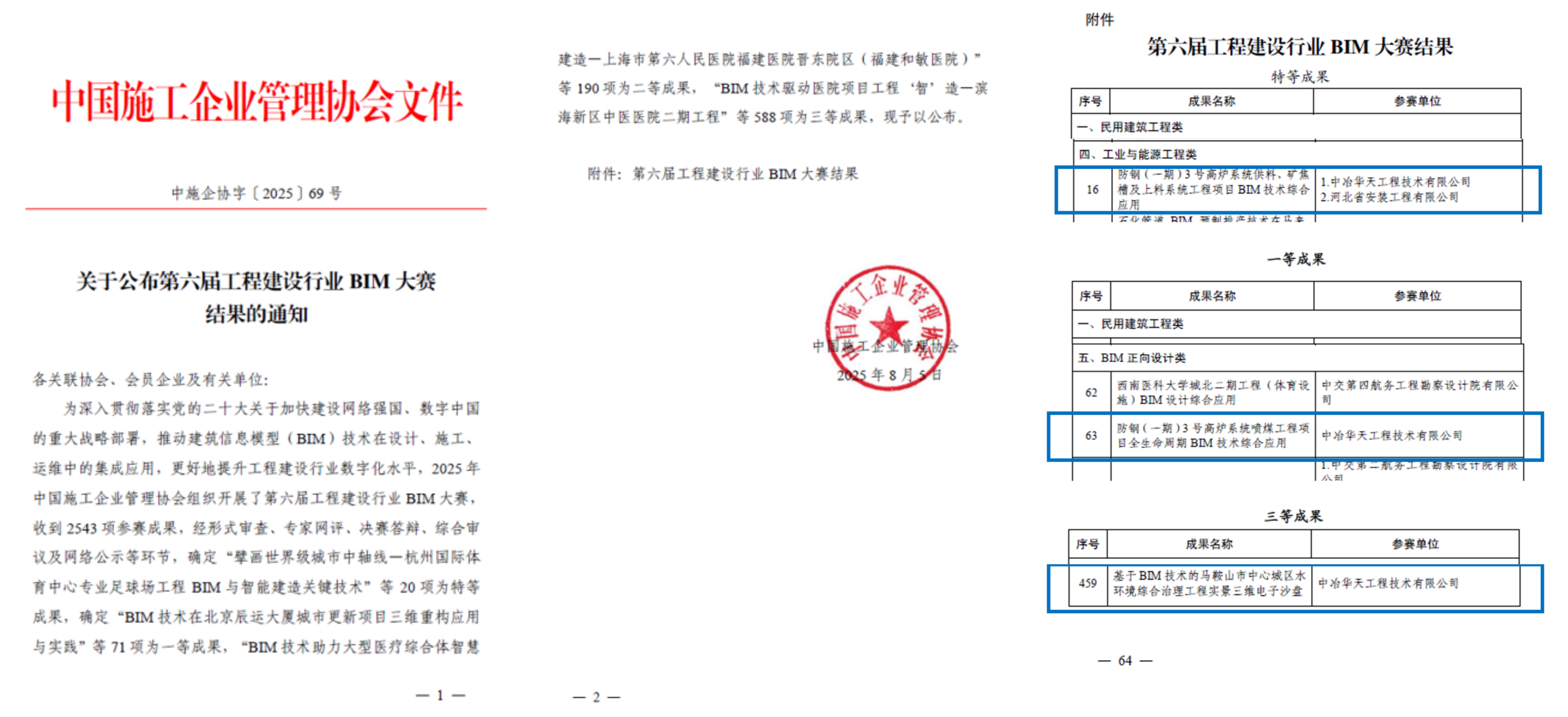 近日,中國施工企業(yè)管理協(xié)會(huì)宣布第六屆全國工程建設(shè)行業(yè)BIM大賽結(jié)果,中冶華天參賽作品“防鋼(一期)3號(hào)高爐系統(tǒng)供料、礦焦槽及上料系統(tǒng)工程項(xiàng)目”和“防鋼(一期)3號(hào)高爐系統(tǒng)噴煤工程”分別榮獲工業(yè)與能源工程類“特等獎(jiǎng)”和BIM正向設(shè)計(jì)類“一等獎(jiǎng)”,參賽作品“基于BIM技術(shù)的馬鞍山市中心城區(qū)水環(huán)境綜合治理工程實(shí)景三維電子沙盤”獲得市政公用工程類“三等獎(jiǎng)”。獲得以上榮譽(yù),實(shí)現(xiàn)歷史性突破,不僅是對(duì)中冶華天項(xiàng)目建設(shè)成果的高度認(rèn)可,也集中展示了其工程數(shù)字建造創(chuàng)新能力,再次擦亮“中冶華天,綠色明天”品牌。